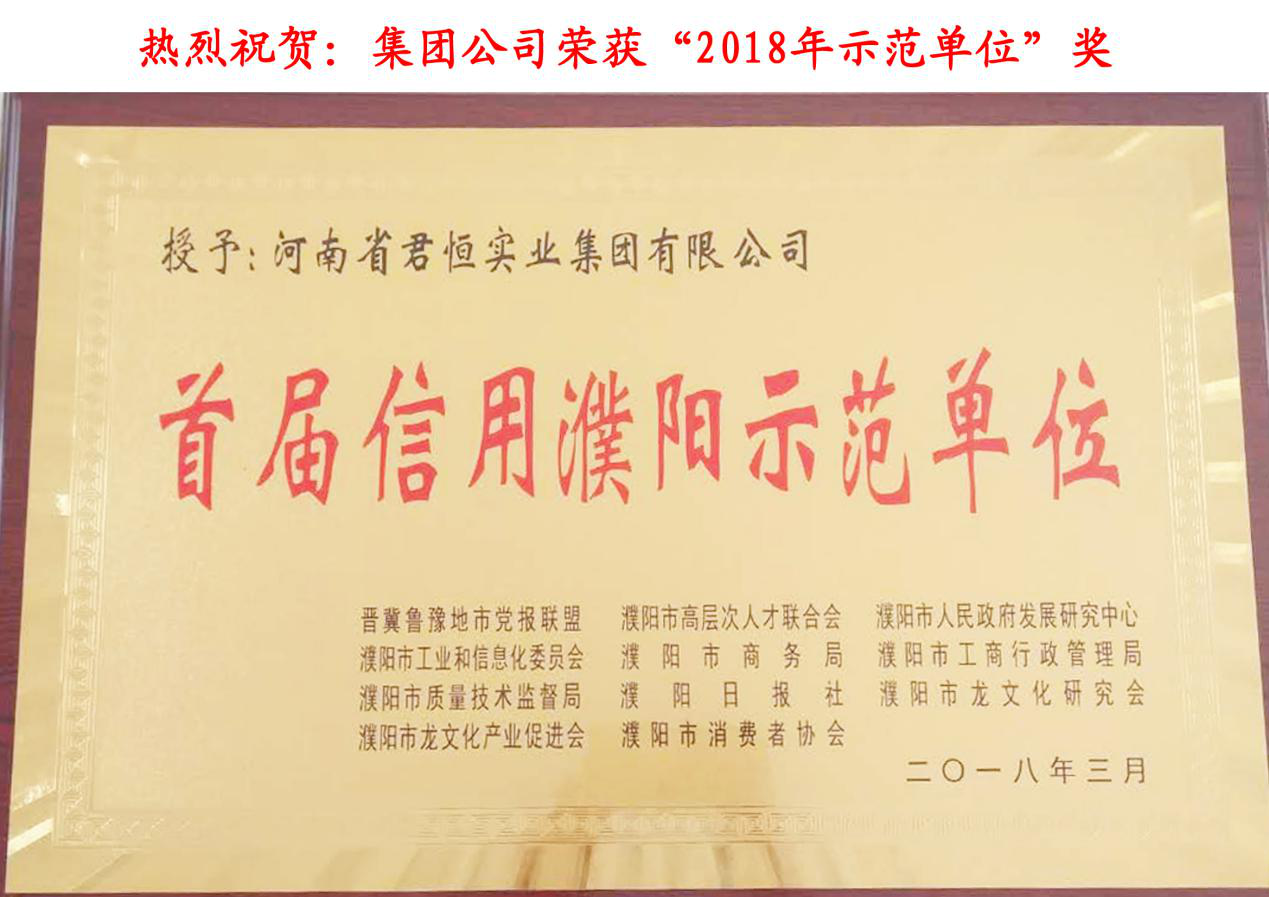 - 2020年3月我集團(tuán)公司被濮陽(yáng)市市場(chǎng)監(jiān)督管理局、濮陽(yáng)日?qǐng)?bào)社、濮陽(yáng)市消費(fèi)者協(xié)會(huì)授予“誠(chéng)信體系建設(shè)示范單位”。近年來(lái)集團(tuán)公司高度重視誠(chéng)信文明建設(shè),樹(shù)立全體員工誠(chéng)信觀念,提高文明素質(zhì),以建立一支紀(jì)律嚴(yán)明、誠(chéng)
